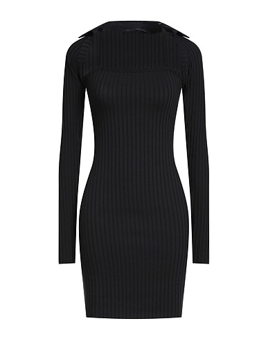 vestido ajustado, punto acanalado, tejido elástico, monocolor, sin aplicaciones, cuello ancho, manga larga, bajo sin rematar, lavar a máquina, no lavar con lejía , no secar en secadora
