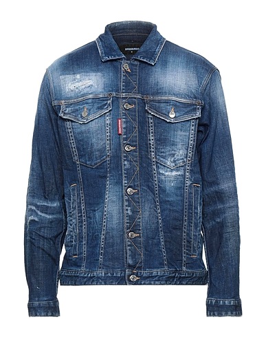 algodón denim, efecto desgastado, efecto desgastado, logotipo de la marca, monocolor, lavado oscuro , cuello clásico, abotonadura simple, manga larga, interior sin forro, cierre con botones, multibolsillos , tejido elástico