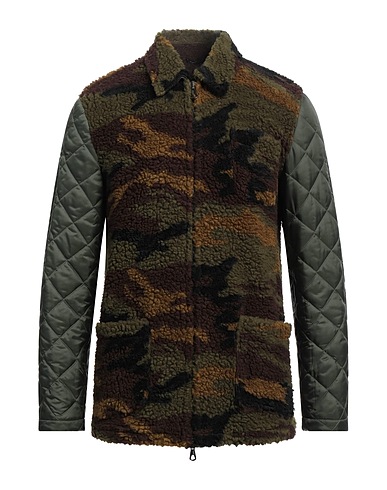 chaqueta de pelo ecológico, tejido sherpa, tela técnica, sin aplicaciones, estampado militar, cuello clásico, abotonadura simple, manga larga, interior parcialmente acolchado, cierre con cremallera, multibolsillos , limpiar en seco, no lavar con lejía , no secar en secadora