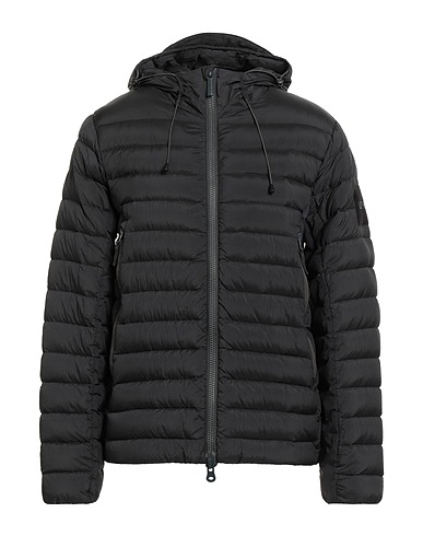 tela técnica, logotipo de la marca, liso con aplicaciones, cuello con capucha, abotonadura simple, manga larga, interior en pluma de pato, cierre de cremallera, multibolsillos , composición con partes de origen animal pero no textil, chaqueta recta