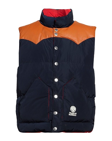 tela técnica, cuero, logotipo de la marca, estampado bicolor, sin mangas , relleno sintético, acolchado ligero, cierre con botones automáticos, bolsillos, composición con partes de origen animal pero no textil, limpieza profesional o en seco, no secar en secadora