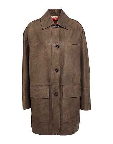 abrigo de botonadura sencilla, piel graneada, monocolor, logotipo de la marca, cierre con correas, cuello clásico, manga larga, interior forrado, cierre con botones, bolsillos con solapa, composición con partes de origen animal pero no textil, no lavar en agua , no lavar con lejía , no secar en secadora, no planchar