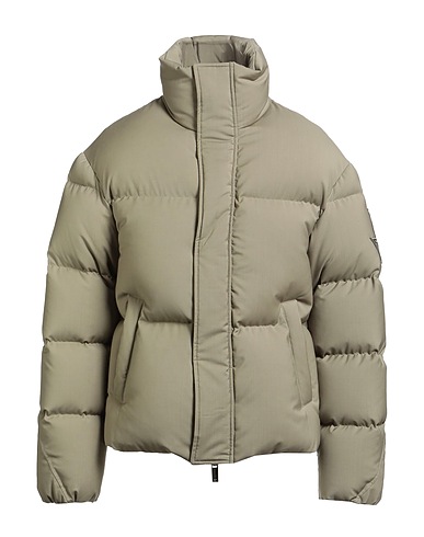 plumífero corto, lana fría, acolchado, logotipo de la marca, monocolor, cuello alto, manga larga, interior en pluma de pato, acolchado grueso, cierre con cremallera, cierre con botones automáticos, bolsillos de ojal, composición con partes de origen animal pero no textil, limpiar en seco, no lavar con lejía , no secar en secadora