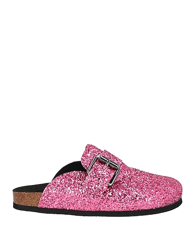 tejido, purpurina, hebilla, liso con aplicaciones, envers en cuir, puntera redonda, sin tacón, suela de goma, composición con partes de origen animal pero no textil, modelo mules
