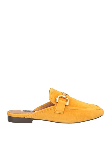 mules, ante, liso con aplicaciones, aplicaciones de metal, interior de piel, puntera redonda, sin tacón, suela de goma, composición con partes de origen animal pero no textil