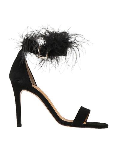 cuero, plumas, monocolor, interior de piel, pulsera en el tobillo con hebilla, puntera redonda, tacòn stiletto, suela de goma, composición con partes de origen animal pero no textil, sandalias con pulsera en el tobillo