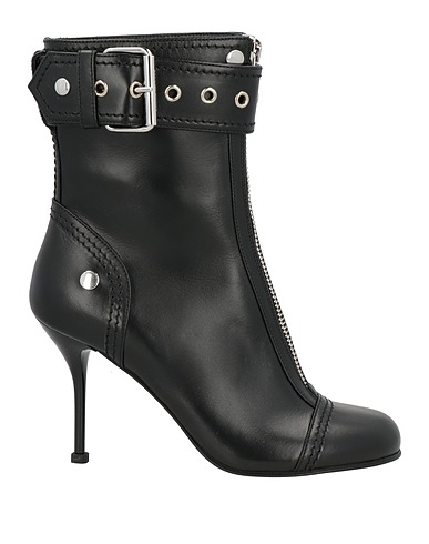 cuero, cierre con correas, liso con aplicaciones, interior de piel, cierre con cremallera, cierre de hebilla, puntera redonda, tacón de aguja, suela de cuero y goma, composición con partes de origen animal pero no textil, botines