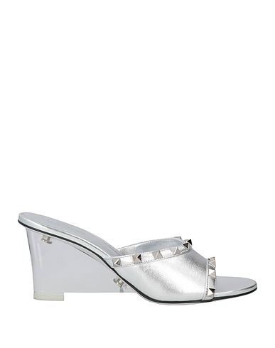 cuero, efecto metálico, tachuelas, liso con aplicaciones, interior de piel, puntera redonda, cuña, cuña de plexiglás, suela de cuero y goma, composición con partes de origen animal pero no textil, sandalias con banda