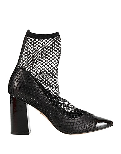 botines, tejido de rejilla, cuero charol, liso con aplicaciones, cristales, interior de piel, puntera redonda, tacón cuadrado, tacón revestido, suela de goma, composición con partes de origen animal pero no textil