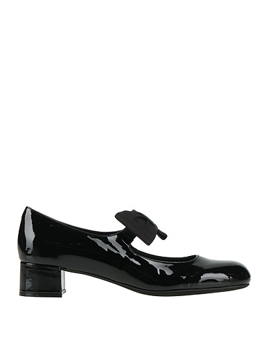 zapatos de salón estilo merceditas, cuero charol, lazo, liso con aplicaciones, interior de piel, inserciones elásticas, puntera redonda, tacón cuadrado, suela de goma, composición con partes de origen animal pero no textil