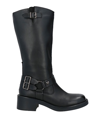 botas, piel de imitación, liso con aplicaciones, cierre con correas, logotipo de la marca, interior de piel, puntera redonda, tacón cuadrado, suela de goma grabada, composición con partes de origen animal pero no textil