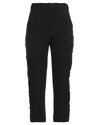 pantalones más estrechos en el bajo, crepé, tejido elástico, monocolor, bandas laterales, cintura alta, regular fit, cierre con cremallera, cierre con corchetes, bolsillos de ojal, lavado a máquina o limpieza en seco, no lavar con lejía , no secar en secadora, cropped
