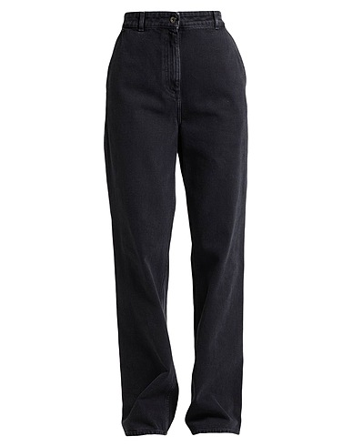 vaqueros anchos, algodón denim, efecto desgastado, monocolor, aplicaciones en piel, logotipo de la marca, lavado de color , cintura alta, cintura con trabillas , regular fit, cierre con cremallera, 1 botón, bolsillos, limpiar en seco, no lavar con lejía , no secar en secadora, composición con partes de origen animal pero no textil