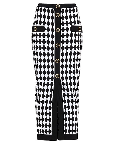 falda de tubo, punto jacquard, punto ligero, estampado geométrico, decorado con botones, bolsillos aplicados, tejido elástico, limpiar en seco, no lavar con lejía , no secar en secadora