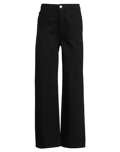 vaqueros anchos, algodón denim, liso con aplicaciones, cristales, logotipo de la marca, lavado de color , cintura alta, regular fit, cierre con botones, multibolsillos , lavado a máquina o limpieza en seco, no lavar con lejía , no secar en secadora