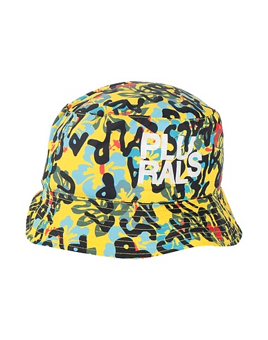 gorro de pescador, tela técnica, estampado multicolor, logotipo de la marca, interior forrado, reversible