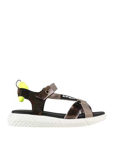 sandalias con pulsera en el tobillo, otomán, ante, efecto metálico, efecto acharolado, estampado militar, logotipo de la marca, interior de piel, cierre con velcro, puntera redonda, sin tacón, suela de goma, composición con partes de origen animal pero no textil, tallaje grande