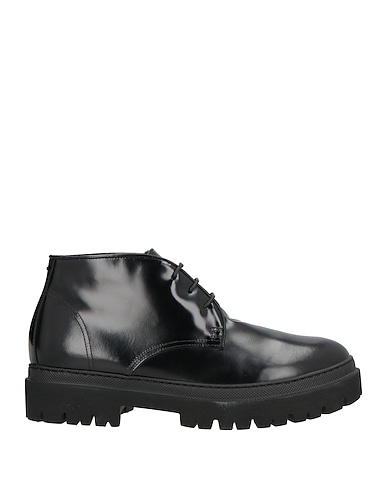 botas de suela gruesa, piel lustrada, monocolor, sin aplicaciones, forro de borrego, puntera redonda, tacón cuadrado, tacón de goma, suela de goma grabada, composición con partes de origen animal pero no textil