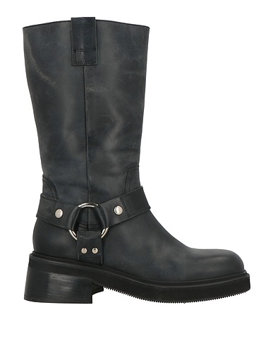 botas, cuero, liso con aplicaciones, con adornos, interior de piel, cierre con cremallera, puntera cuadrada, tacón cuadrado, suela de goma, composición con partes de origen animal pero no textil