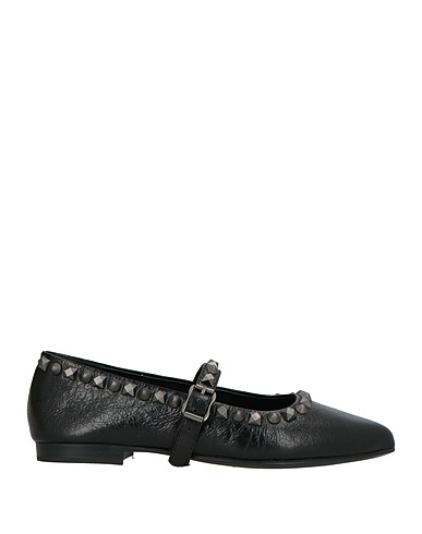 merceditas, cuero, liso con aplicaciones, tachuelas, interior de piel, cierre de hebilla, puntera estrecha, sin tacón, suela de cuero y goma, composición con partes de origen animal pero no textil