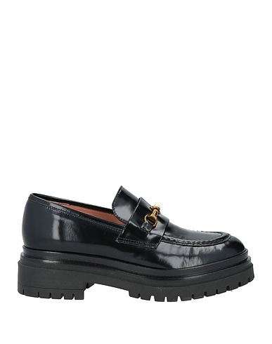 mocasines gruesos, cuero charol, liso con aplicaciones, con adornos, interior de piel, puntera redonda, tacón cuadrado, suela de goma grabada, composición con partes de origen animal pero no textil