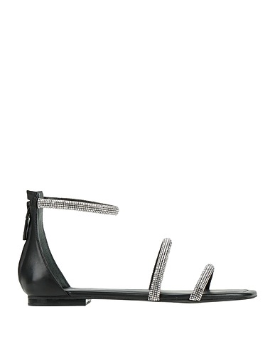 sandalias con pulsera en el tobillo, cuero, liso con aplicaciones, cristales, interior de piel, cierre con cremallera, puntera cuadrada, sin tacón, suela de goma, composición con partes de origen animal pero no textil
