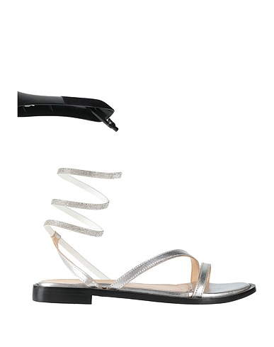 sandalias, cuero, efecto metálico, liso con aplicaciones, cristales, interior de piel, puntera redonda, sin tacón, suela de cuero, composición con partes de origen animal pero no textil