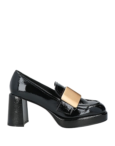 mocasines, cuero charol, con adornos, liso con aplicaciones, interior de piel, puntera cuadrada, tacón cuadrado, tacón revestido, suela de goma, composición con partes de origen animal pero no textil
