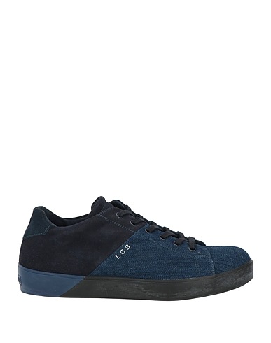 sneakers, algodón denim, ante, monocolor, logotipo de la marca, interior de tejido, cierre con cordones, puntera redonda, suela de goma, composición con partes de origen animal pero no textil