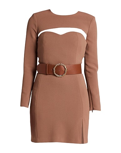 vestido ajustado, crepé, monocolor, cinturón, cuello redondo, manga larga, sujetador interno incorporado, cierre con corchetes, cierre con cremallera, sin bolsillos, abertura delantera, tejido elástico, set de tres piezas, limpiar en seco, no secar en secadora