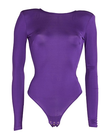 jersey, inserts en métal, uni, col rond, manches longues, avec épaulette, sans poche, chemise body, tissu élastique, tournure réduite