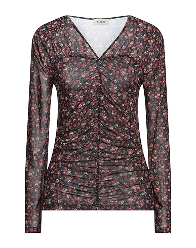top, tulle, fantaisie fleurie, froncé, col en v, manches longues, avec des épaulettes rembourrées, intérieur partiellement doublé, tissu élastique