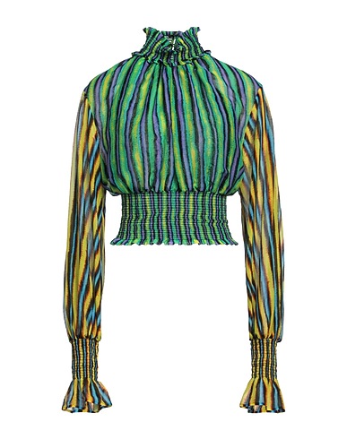 top, toile, rayures, froncé, ruchés, col roulé, manches longues