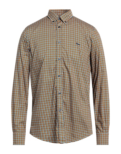 toile, logo de la marque, pied de poule, col classique, manches longues, poignets avec boutons, fermeture avec boutons, sans poche