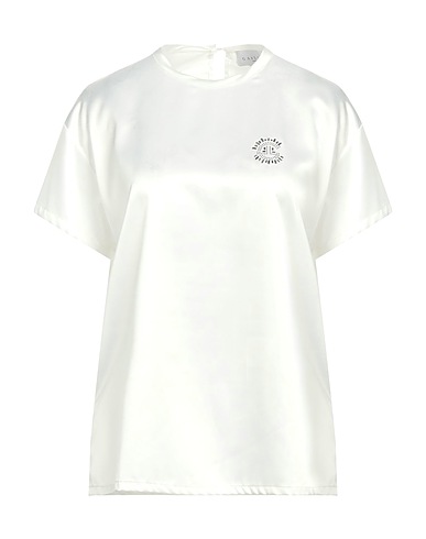 top, satin, couleur unie avec applications, cristaux, col rond, manches courtes, 1 bouton, bas avec fentes latérales, tissu élastique
