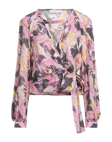 top cache-cœur, crêpe, imprimé multicolore, applications amovibles, plissé, col en v, manches longues, poignets avec boutons, fermeture à nouer, cette marque taille grand