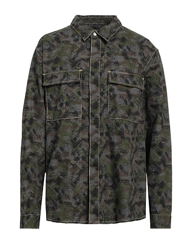 chemise regular, toile, jacquard, fantaisie camouflage, sans applications, col classique, manches longues, poignets avec boutons-pression, fermeture à boutons dissimulés, poche poitrine double