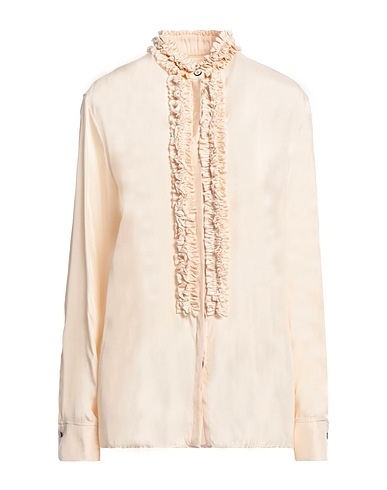chemise avec ruches, satin, ruchés, couleur unie avec applications, col mao, manches longues, poignets avec boutons, fermeture à boutons dissimulés, sans poches, contient des parties non textiles d’origine animale, nettoyage à sec, ne pas sécher en machine
