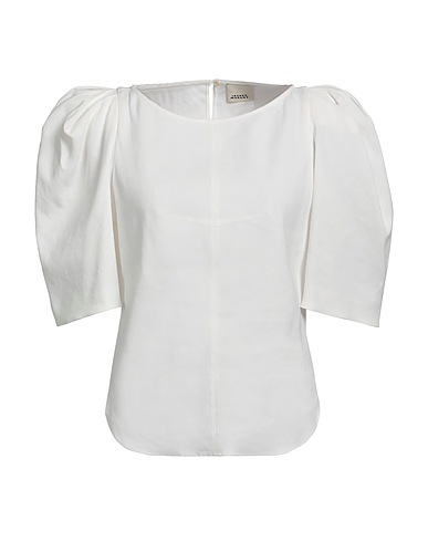 toile, sans applications, uni, col rond, manches courtes, manches bouffantes, 1 bouton, sans poches, tissu élastique, top