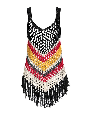maille, à franges, imprimé multicolore, décolleté profond, sans manches, sans poche, top