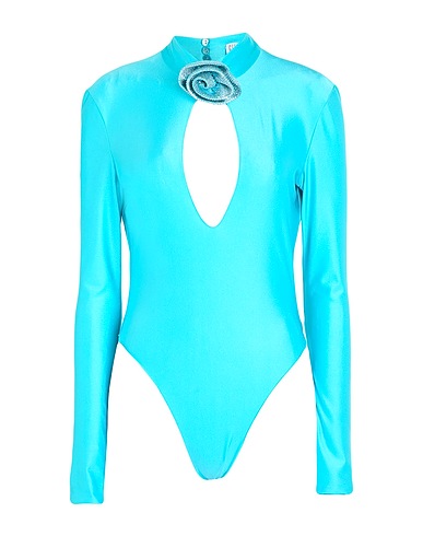jersey synthétique, tissu stretch, uni, applications de fleurs, dos nu, col roulé, manches longues, fermeture à boutons, nettoyage à sec, ne pas utiliser de javel, ne pas sécher en machine