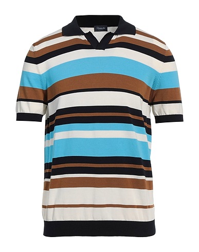 tricot intarsia, maille légère, sans applications, rayures, col boutonné, manches courtes, laver en machine ou à sec, ne pas utiliser de javel, ne pas sécher en machine