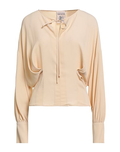 crêpe, sans applications, uni, manches longues, fermeture à glissière, sans poches, nettoyage à sec, ne pas utiliser de javel, ne pas sécher en machine, blouse avec nœud