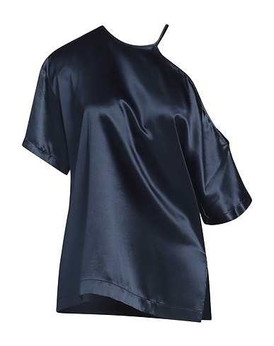 top, satin, uni, sans applications, col rond, manches courtes, nettoyage à sec, ne pas utiliser de javel, ne pas sécher en machine