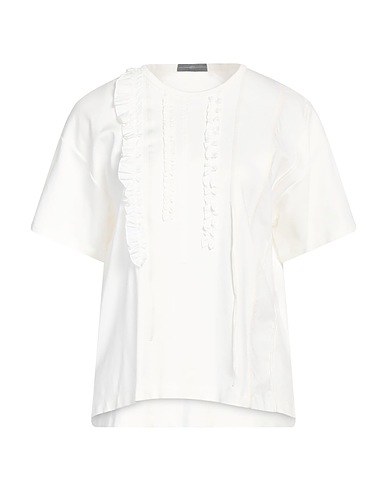 t-shirt, jersey, uni, ruchés, décoré, col rond, manches courtes, bas avec fentes latérales, laver à la main, ne pas utiliser de javel, ne pas sécher en machine