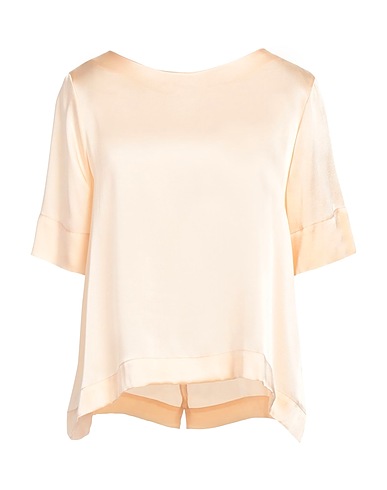 top, satin, uni, sans applications, encolure bateau, manches courtes, nettoyage à sec, ne pas utiliser de javel, ne pas sécher en machine