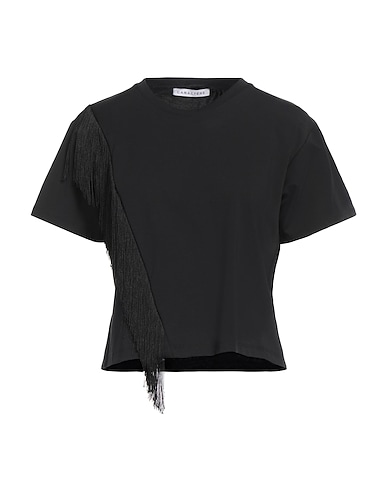 t-shirt, jersey, couleur unie avec applications, à franges, col rond, manches courtes, tissu élastique, laver en machine ou à sec, ne pas utiliser de javel, ne pas sécher en machine