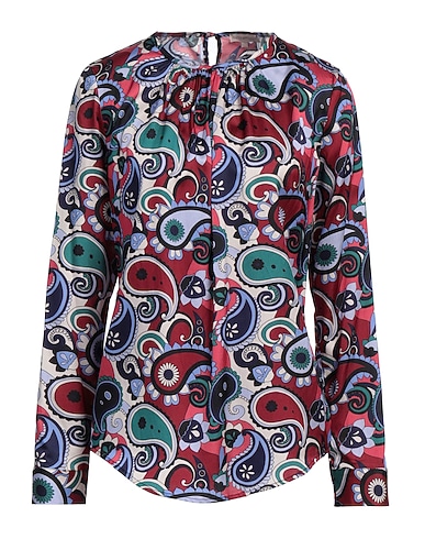 top, satin, imprimé cachemire, sans applications, col rond, manches longues, 1 bouton, tissu élastique, contient des parties non textiles d’origine animale, nettoyage à sec, ne pas utiliser de javel, ne pas sécher en machine