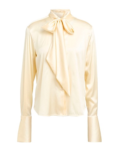 chemise avec nœud, satin, uni, sans applications, manches longues, fermeture à boutons, tissu élastique, nettoyage à sec, ne pas utiliser de javel, ne pas sécher en machine, cette marque taille petit