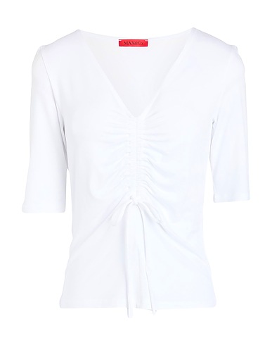 top, jersey, tissu stretch, uni, froncé, col en v, manches courtes, lavage à la main ou nettoyage à sec, ne pas utiliser de javel, ne pas sécher en machine